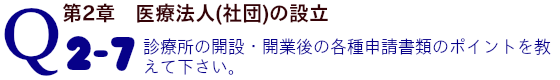 注1)書類が整った時点で事前に保健所担当者のチェックを受けるとよい 注2)申請後15日くらいで許可が下りる 注3)保険医療機関指定申請書の締め切りに間に合うよう提出することが望ましい 注4)都道府県により書式や添付書類が若干異なる |