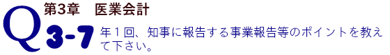 ・1(5)役員および評議員……この欄は、社会医療法人、特別医療法人および特定医療法人以外の医療法人は記載しなくてもよいこと ・2(4)当該会計年度内に社員総会または評議員会で議決または同意した事項……定款が社員総会の年2回開催としている場合、監事の監査報告書の記載内容に影響すること。その他、定款改正の臨時社員総会の開催など記載もれ等や虚偽記載がないこと ・診療所のみ開設法人以外の医療法人は(5)~(7)の記載((7)は任意)が求められているが、これらの中に(4)の社員総会の議決の記載がもれていないこと |
